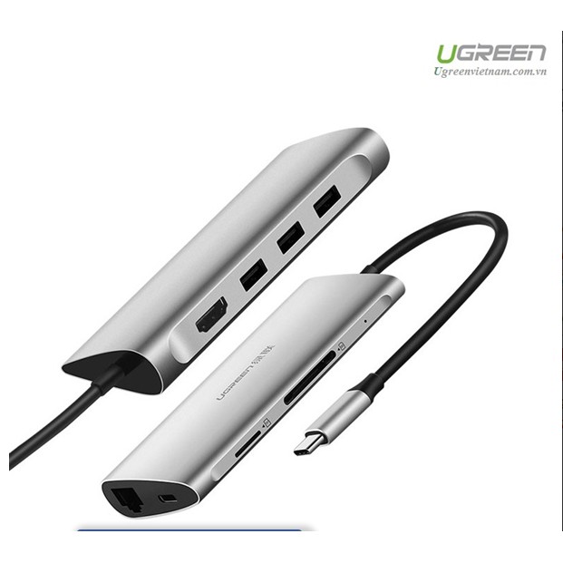 Máy tính & Laptop > Thiết Bị Lưu Trữ > USB & OTG || Ugreen 50516 HUB USB Type C to 3xusb 3.0 / HDMI / RJ45 / sd&tf converter bạc - Hàng Chính HãngCòn hàng