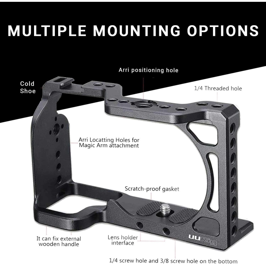 ◾ Khả năng mở rộng gắn nhiều: khung máy ảnh này cho phép gắn các phụ kiện như micrô, ánh sáng lấp đầy, màn hình và cánh tay ma thuật, cũng như bảo vệ máy ảnh của bạn