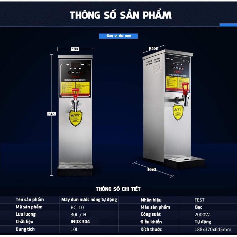 THÔNG SỐ KỸ THUẬT CỦA MÁY ĐUN NƯỚC SIÊU TỐC FEST- RC10
