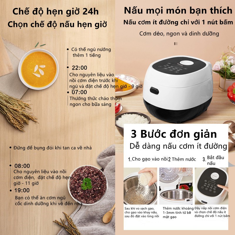 Thiết Bị Điện Gia Dụng > Đồ gia dụng nhà bếp > Nồi cơm điện || UPUPIN Smart Rice Cooker UP-F68 Ít Đường 1L Low Carbo CookerCòn hàng