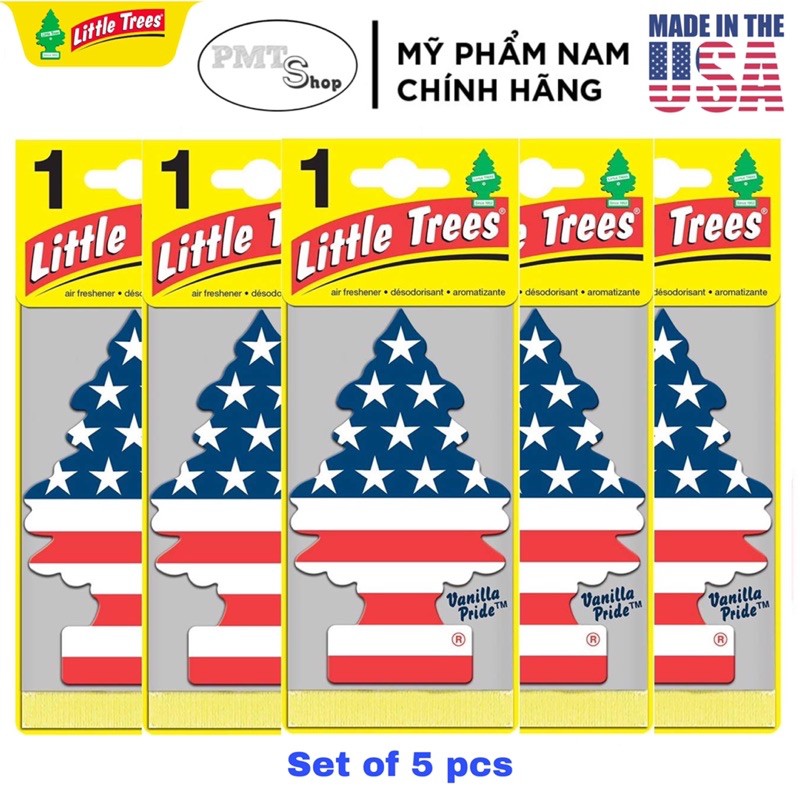 Giới thiệu [USA] Combo 5 Cây thông thơm Little Trees Vanilla cờ Mỹ - Túi thơm thơm phòng, ô tô