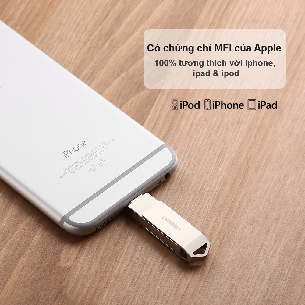 Máy tính & Laptop > Thiết Bị Lưu Trữ > USB & OTG || USB 2.0 + Ổ Flash đầu lightning cho iPhone / iPad hỗ trợ 16Gb/32Gb/64Gb/128Gb UGREEN US200Còn hàng
