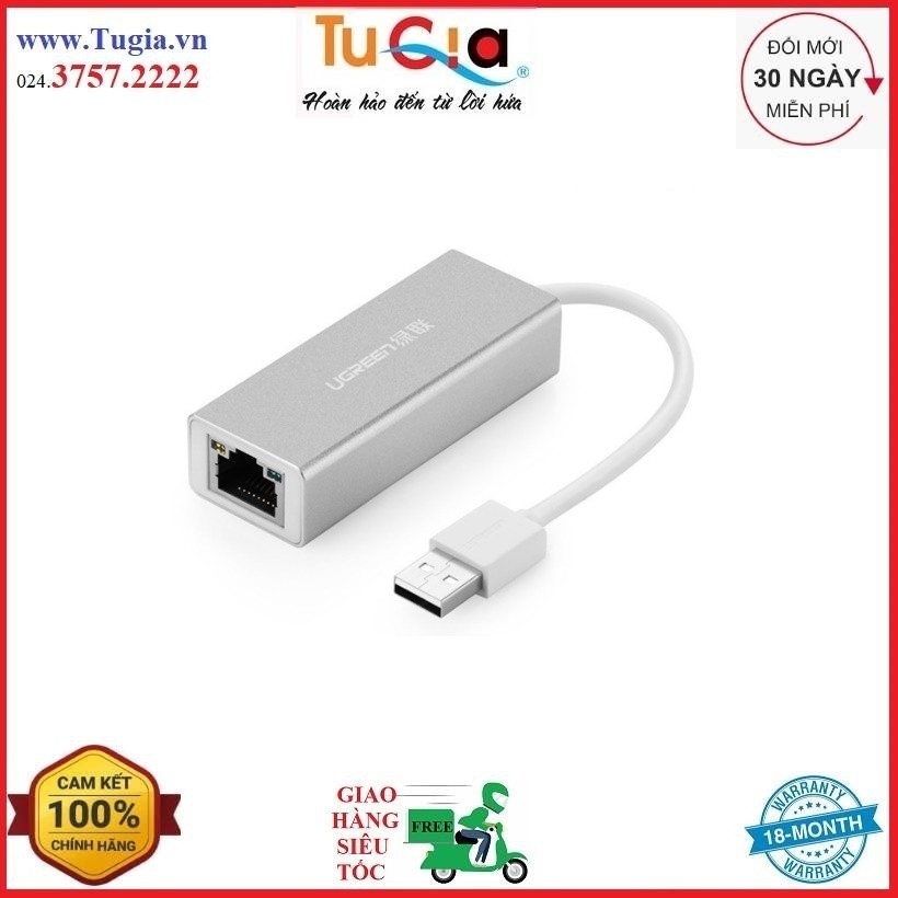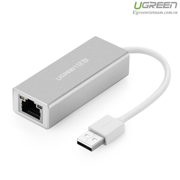 USB 2.0 to LAN, hỗ trợ 10/100Mbps tốc độ internet vỏ hợp kim Ugreen 20257-kẽm bạc Hàng Chính Hãng