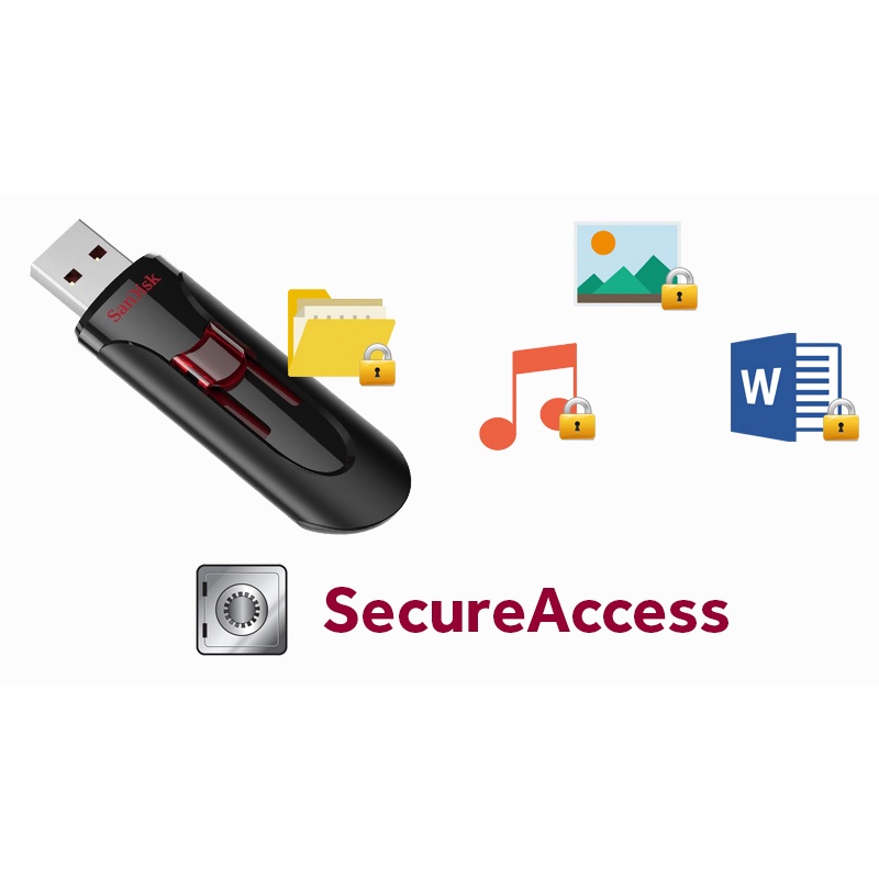Phần mềm bảo mật SanDisk SecureAccess đi kèm sẽ giúp bạn tạo một thư mục riêng trên ổ đĩa của bạn và mã hóa nó bằng thuật toán AES 128-bit kèm theo mật khẩu bảo vệ giúp bạn dễ dàng bảo vệ các tệp quan trọng. Chỉ cần chép dữ liệu quan trọng vào thư mục đã được chỉ định, dữ liệu của bạn sẽ được bảo vệ an toàn.
