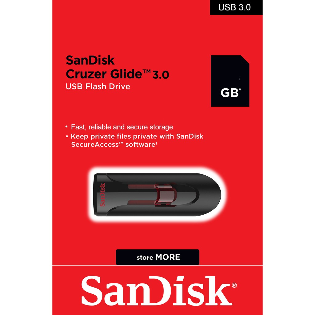 Với tốc độ ghi lên đến 30MB/s, USB 3.0 SanDisk Cruzer Glide CZ600 cho phép bạn sao chép và di chuyển dữ liệu cực kỳ nhanh chóng, tốc độ nhanh hơn 5X so với chuẩn USB 2.0. Thiết kế dạng trượt có thể thu vào được giúp bảo vệ đầu nối khi không sử dụng, và phần mềm SanDisk SecureAccess đi kèm cung cấp các chức năng bảo vệ mật khẩu các dữ liệu cá nhân của bạn được an toàn.