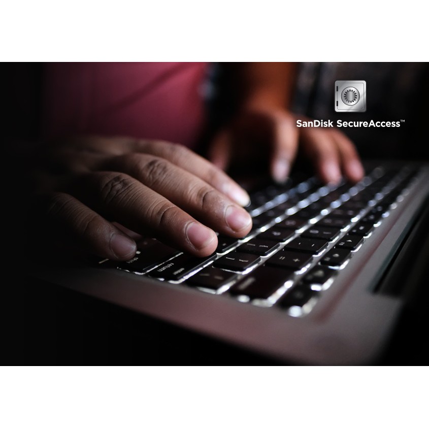 Phần mềm bảo mật SanDisk SecureAccess đi kèm sẽ giúp bạn tạo một thư mục riêng trên ổ đĩa của bạn và mã hóa nó bằng thuật toán AES 128-bit kèm theo mật khẩu bảo vệ giúp bạn dễ dàng bảo vệ các tệp quan trọng. Chỉ cần chép dữ liệu quan trọng vào thư mục đã được chỉ định, dữ liệu của bạn sẽ được bảo vệ an toàn.
