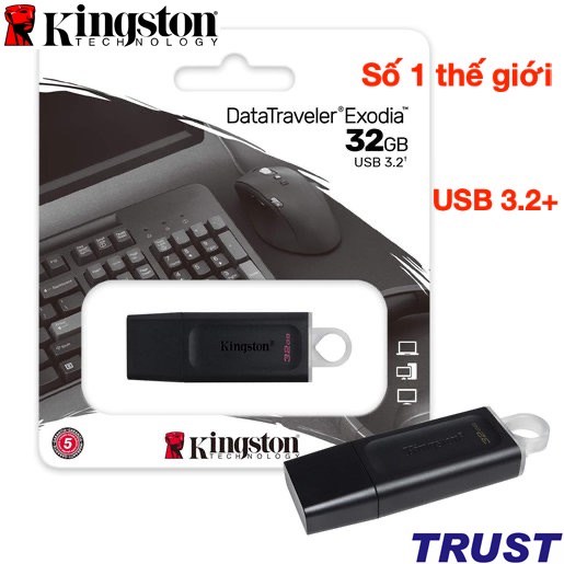 Máy tính & Laptop > Thiết Bị Lưu Trữ > USB & OTG || USB 3.2+ 32GB Kingston Exodia USB 3.2+ 32GB tốc độ upto 100MB/s, BH 5 Năm Hàng Chính HãngCòn hàng