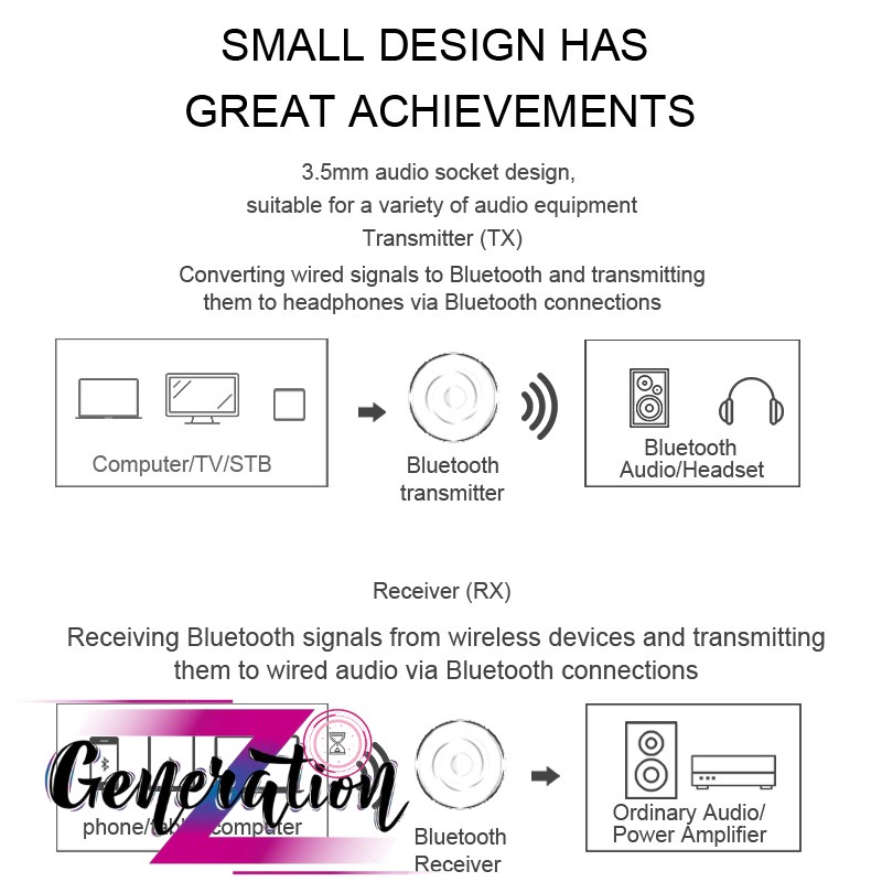Khả năng tương thích rộng: Với cáp 3,5mm đi kèm, bộ chuyển đổi Bộ thu này có thể được sử dụng rộng rãi trên máy tính, máy tính xách tay, hệ thống âm thanh nổi tại nhà, tai nghe, điện thoại thông minh, máy nghe nhạc Mp3, máy nghe nhạc CD, v.v.