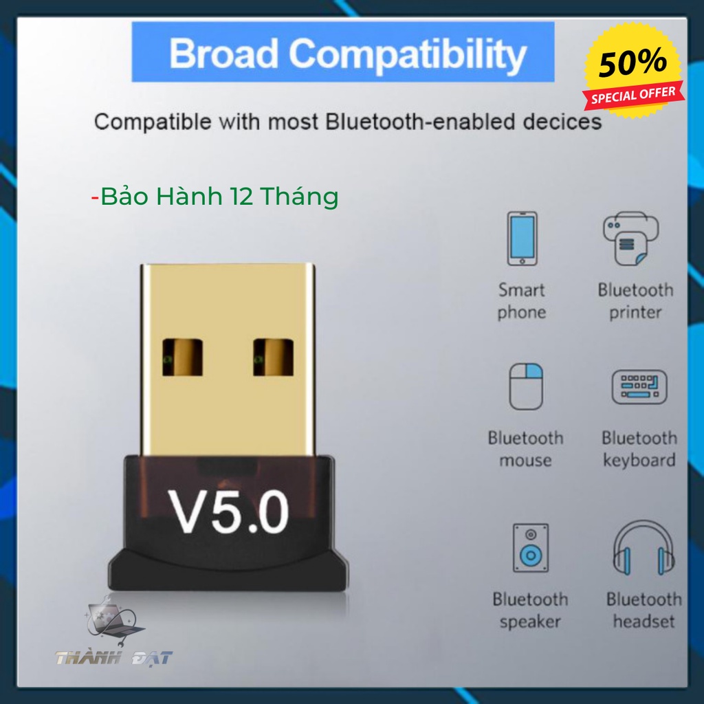 Máy tính & Laptop > Thiết Bị Lưu Trữ > USB & OTG || USB Bluetooth 5.0 cho PC -USB Bluetooth Máy tính kết nối 20m V5.0 [TIỆN DỤNG]Còn hàng