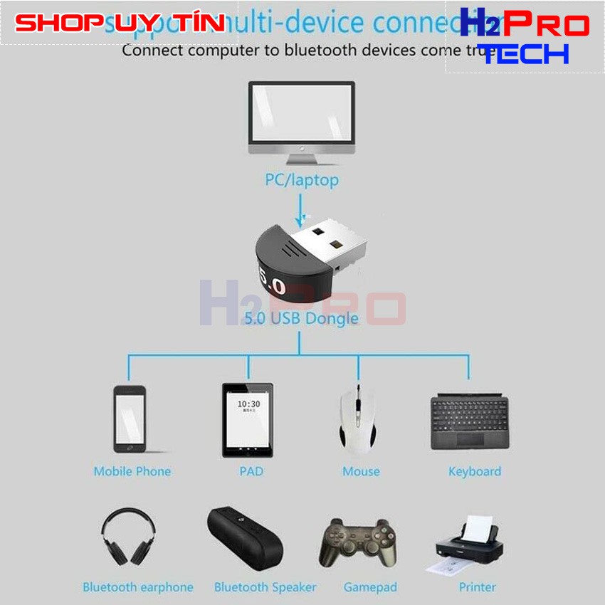 Máy tính & Laptop > Thiết Bị Lưu Trữ > USB & OTG || Usb bluetooth 5.0 Dongle H2PRO làm thiết bị kết nối bluetooth cho PC, laptopCòn hàng