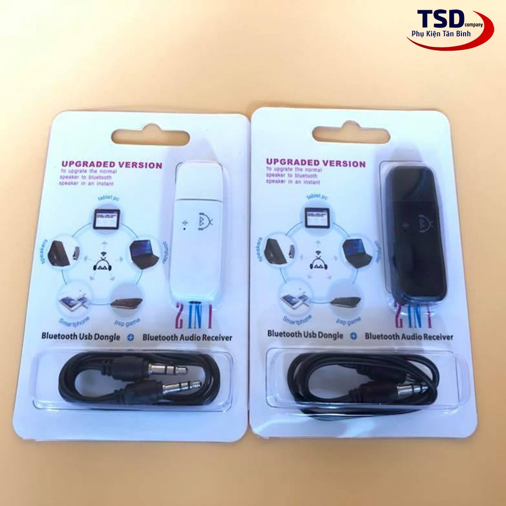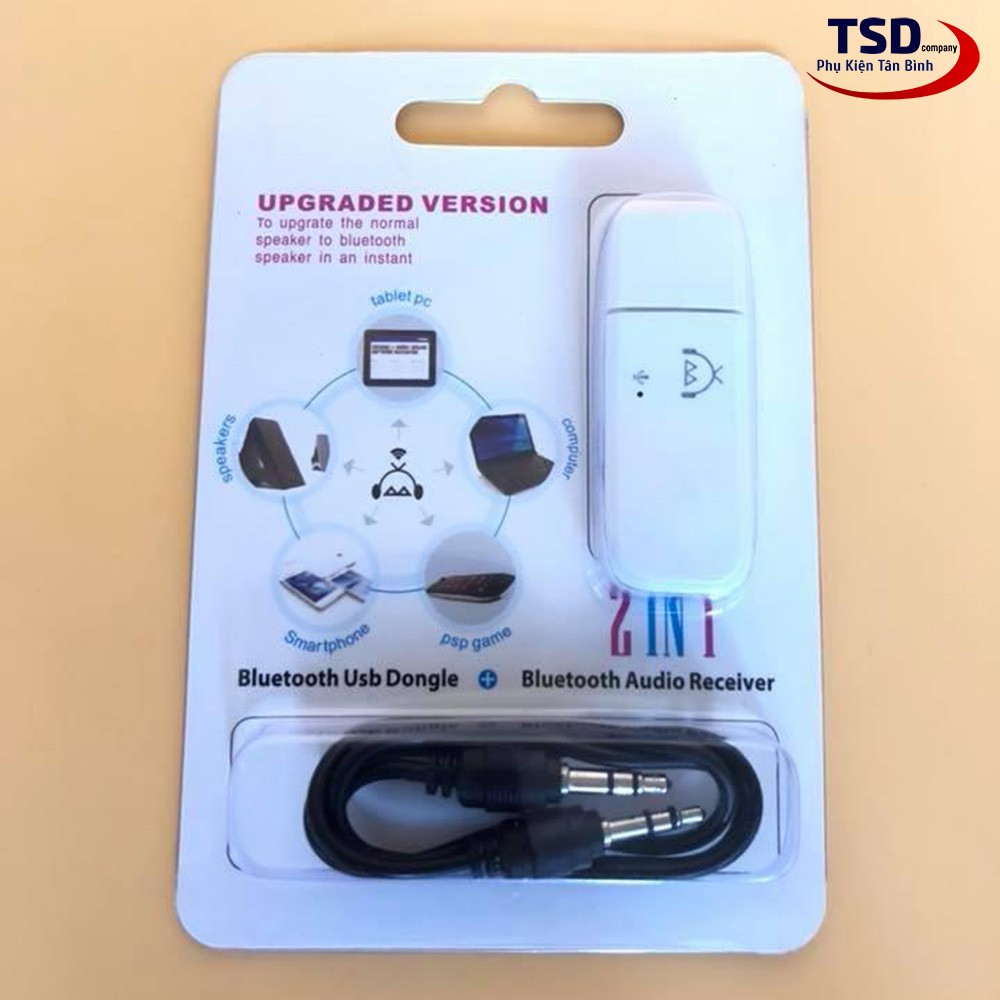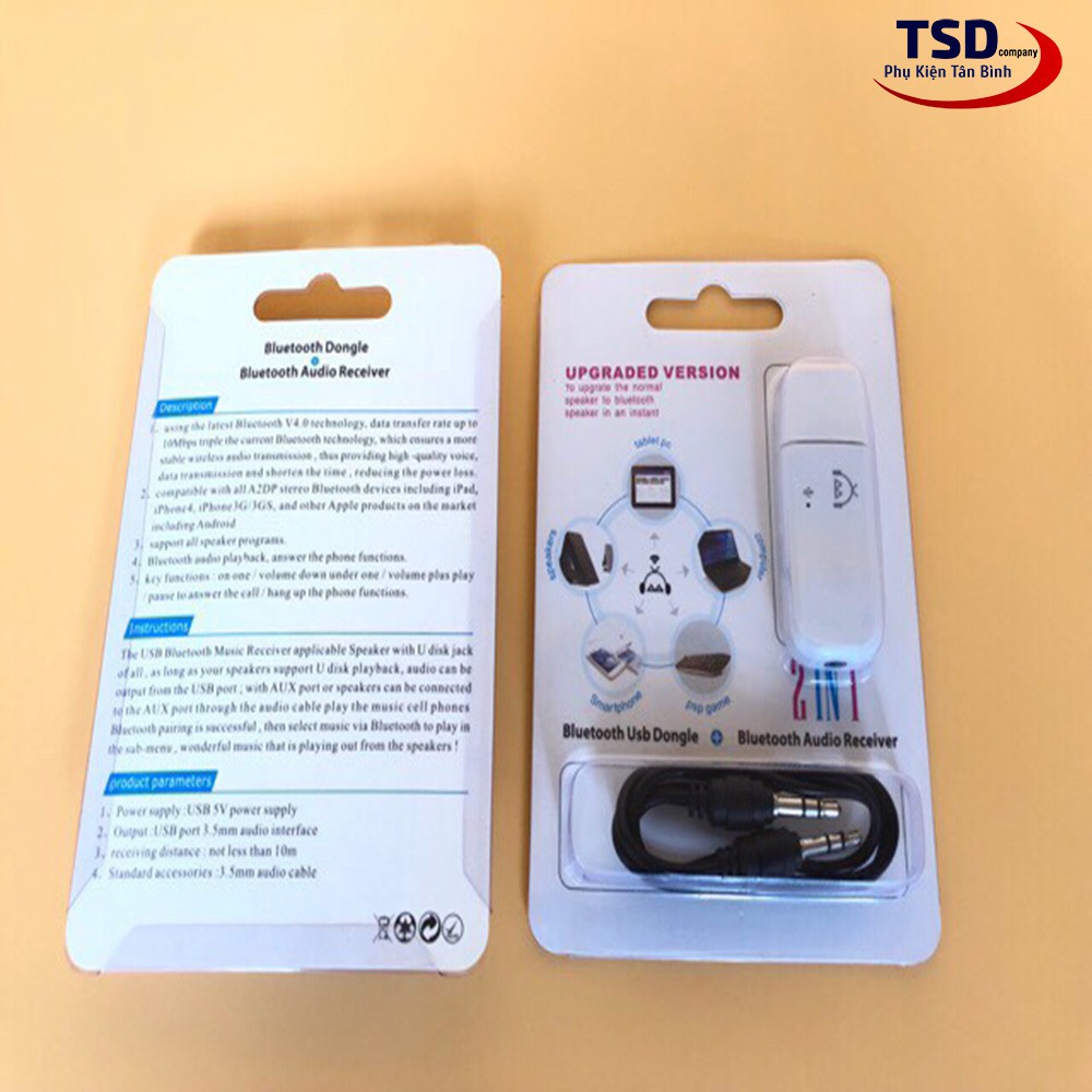 - Bộ sản phẩm gồm: 1 usb bluetooth, 1 cáp 2 đầu 3.5
