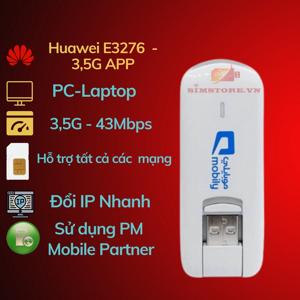 USB Dcom 4G E3276 đa mạng Dcom đổi ip siêu tốt Simstore
