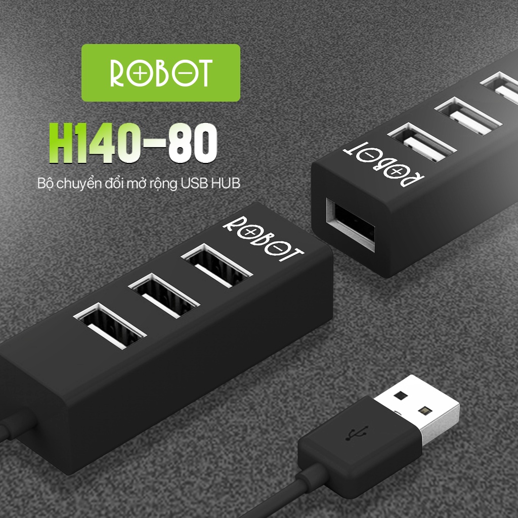 HUB CHUYỂN ĐỔI CHIA CỔNG USB ROBOT HT140-80 - HỔ TRỢ MỞ RỘNG 4 CỔNG USB 2.0 - DÂY NỐI DÀI 80 CMSản phẩm chính hãng ROBOT