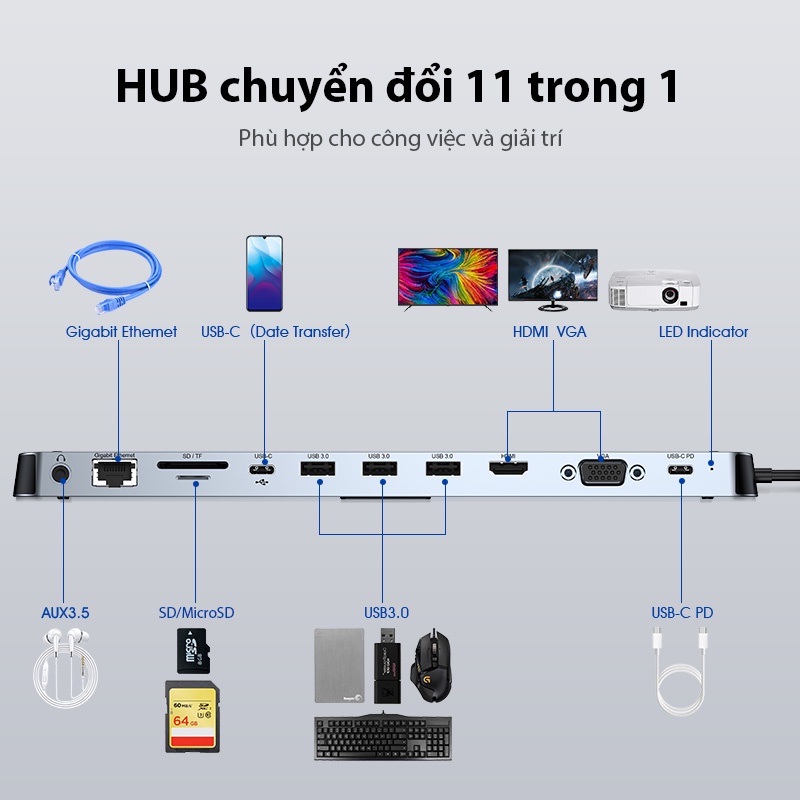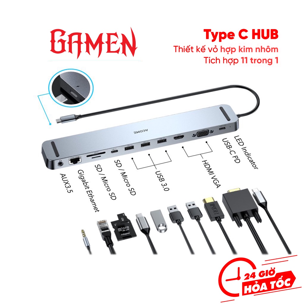 HUB Type- Chuyển Đổi Đa Năng 11 in 1 Tốc Độ Cao Cổng USB 3.0, SD/Micro, PD Type-C ho Laptop MacbookThương Hiệu: ACOME
