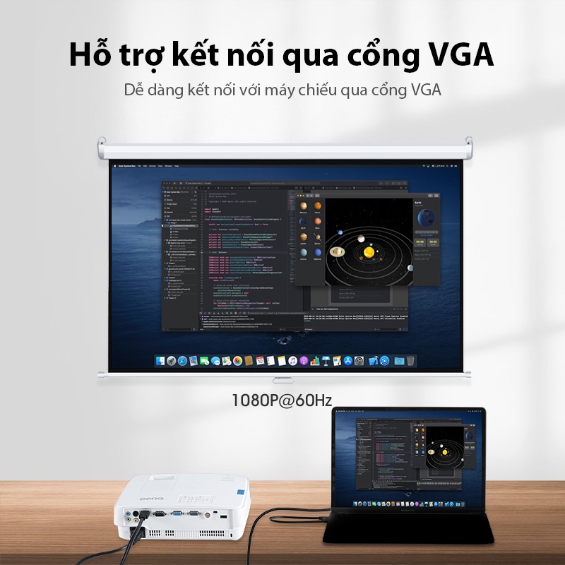 ☀️Hỗ trợ kết nối qua cổng VGA: Dễ dàng kết nối với máy chiếu qua cổng VGA