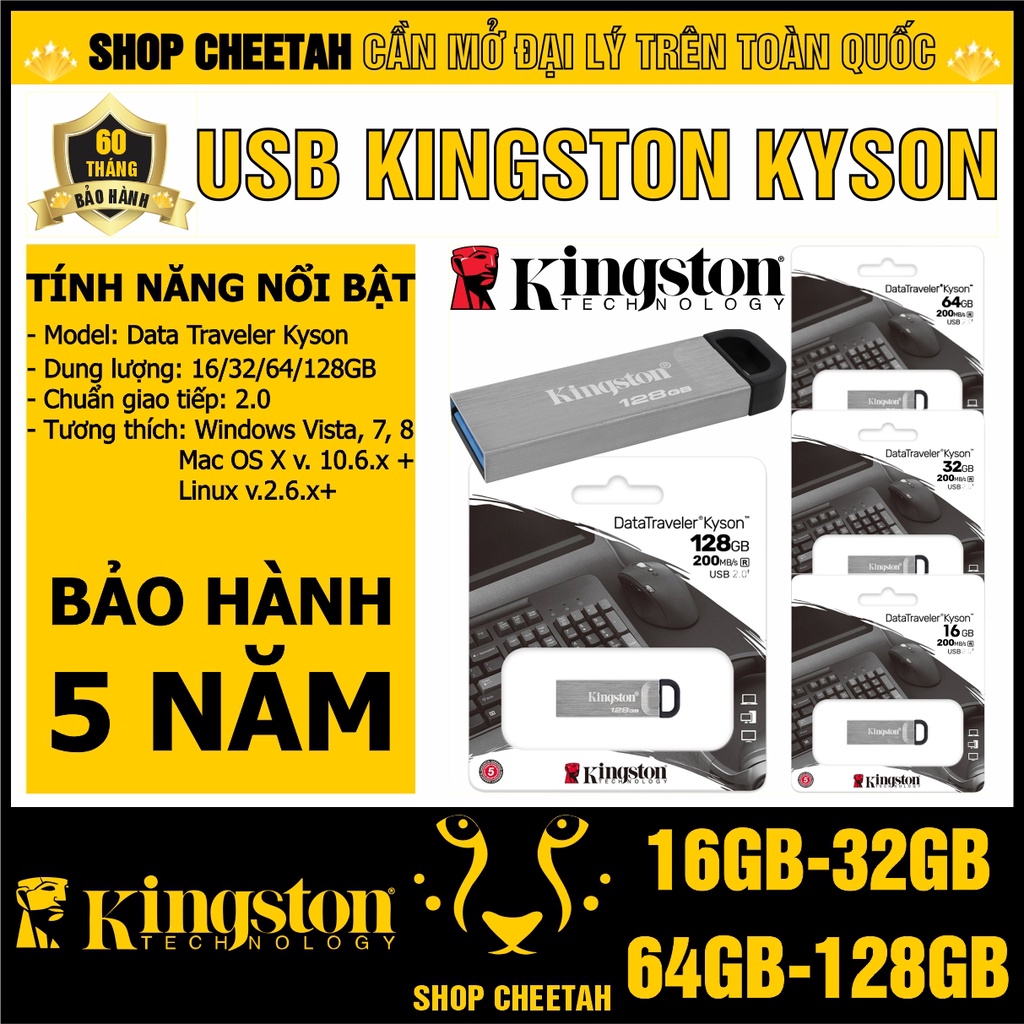 - USB 2.0 Kingston DataTraverler Kyson là thiết bị tận dụng các cổng USB 2.0 ở các máy tính xách tay và máy tính để bàn mới có tốc độ nhanh hơn chuẩn USB 2.0 đến 10 lần; cho phép bạn nhanh chóng chuyển đổi tất cả dữ liệu của mình, từ văn bản, các bài báo cáo đến các file nhạc, hình ảnh... Sản phẩm còn nổi bật bởi thiết kế đơn giản, gam màu sang trọng cùng khả năng tương thích ngược với các hệ thống USB 2.0, mang đến nhiều tiện ích cho người dùng.
