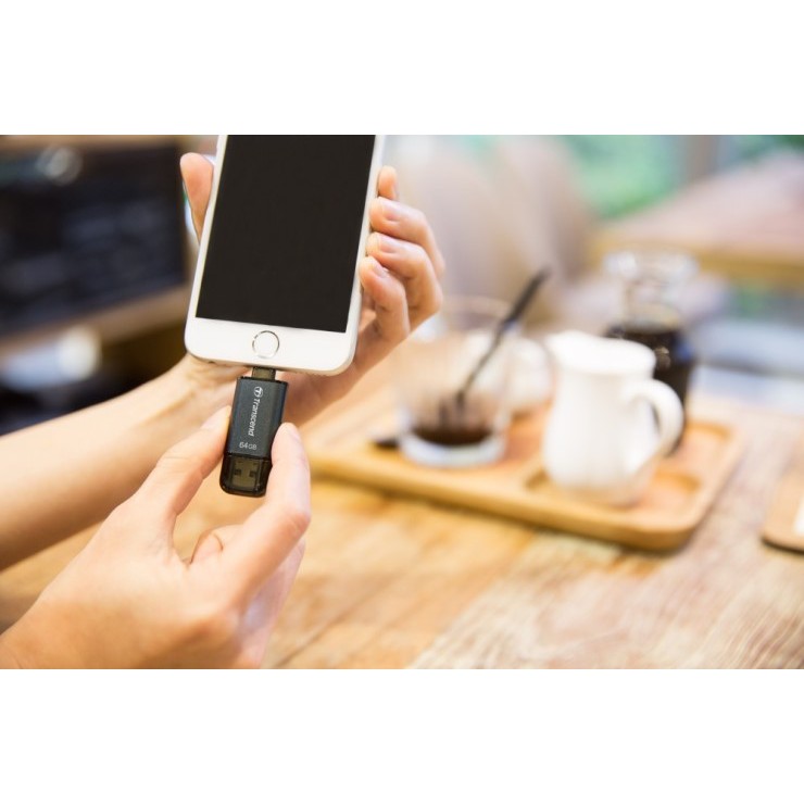 Bạn có thể mở rộng dung lượng lưu trữ cho các thiết bị iOS (như iPhone, iPad, iPod) của mình, cũng như trao đổi các file dữ liệu giữa các thiết bị iOS, máy tính Mac, thậm chí giữa các thiết bị của Apple với máy tính PC (đặc biệt các file multimedia có dung lượng lớn mà rất bất tiện khi chia sẻ qua kết nối không dây) một cách dễ dàng nhờ sự trợ giúp của ổ Flash drive Transcend JetDrive Go 300 Series. Bí quyết nằm ở chỗ có cả hai đầu cắm Lightning và USB 3.1 Gen 1 ở hai đầu của usb Flash drive có kích thước nhỏ nhắn (56,5 x 20 x 7,8 mm) và rất nhẹ (chỉ 8g) này.Được thiết kế cho các thiết bị iOS, ổ Transcend JetDrive Go 300 Series được Apple cấp chứng nhận MFi-certified công nhận đáp ứng các tiêu chuẩn chặt chẽ về sản xuất, khả năng hoạt động và tính an toàn.