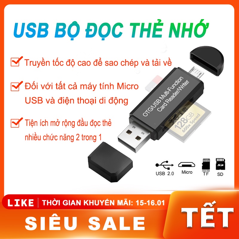Máy tính & Laptop > Phụ Kiện Máy Tính > Bộ chia cổng USB & Đọc thẻ nhớ || USB + OTG Micro SD / SDXC Bộ đọc thẻ TF Bộ điều hợp đa chức năng U Đĩa PC Điện thoại Bộ đọc thẻ nhớ [DKQ01]Còn hàng