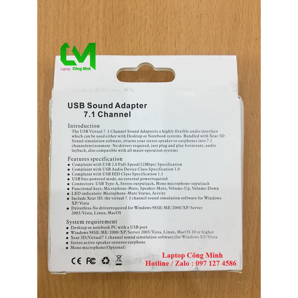 Máy tính & Laptop > Linh Kiện Máy Tính > Bo Mạch Âm Thanh || Usb Sound 7.1Còn hàng