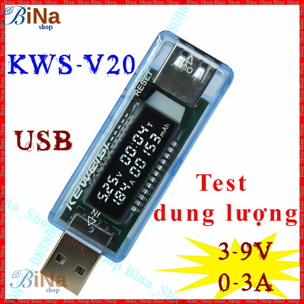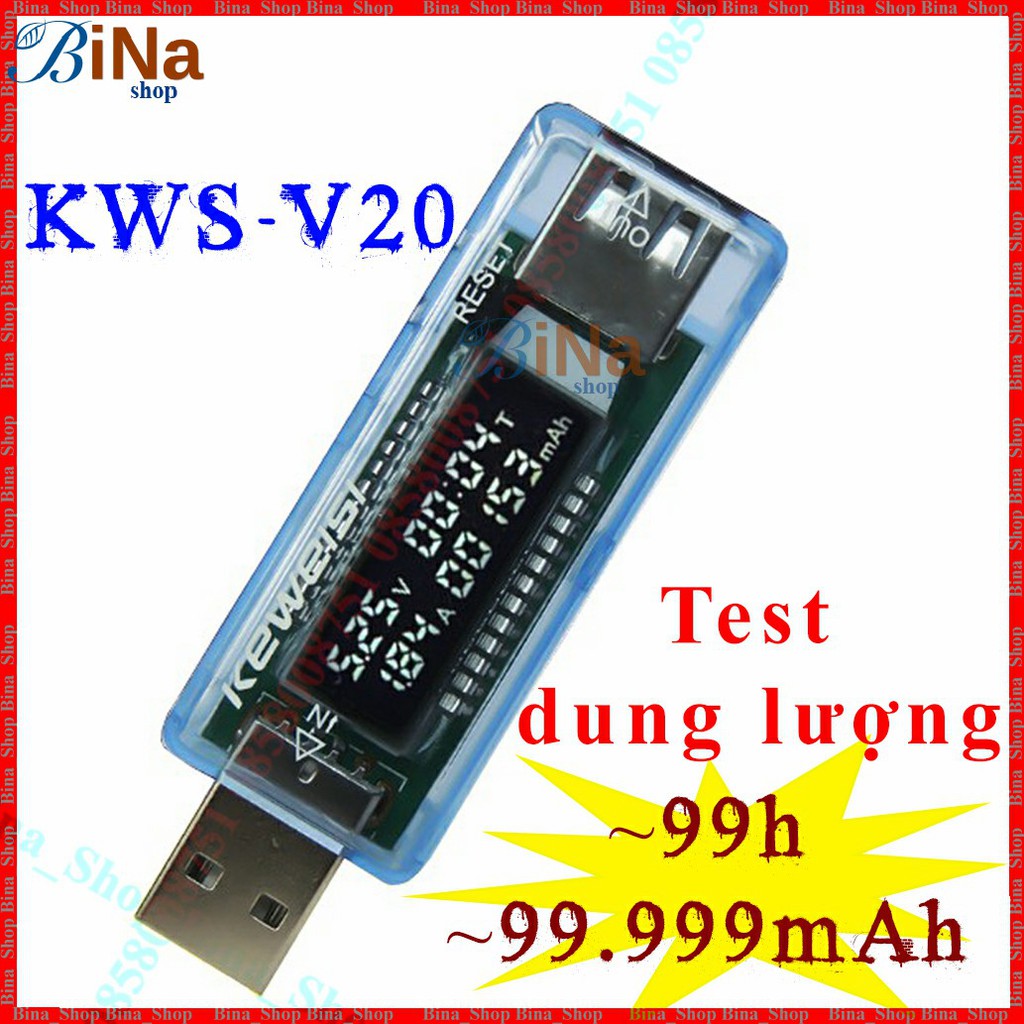 USB test dung lượng điện áp dòng xả KWS-V20- Điện áp đo : từ 3V đến 30V