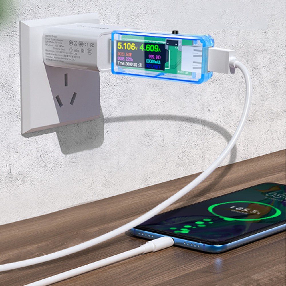 Đo dòng điện, điện áp, dung lượng, thời gian, nhiệt độ khi sạcKiểm tra chất lượng dây/cáp sạc