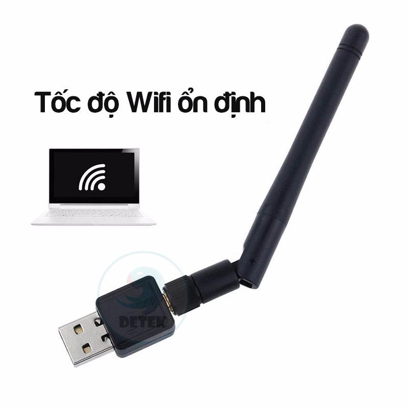 * Tên sản phẩm: USB thu wifi cho máy tính 802.11 có Anten * Trọng lượng: 5 g * Cổng kết nối: USB 2.0 * Băng tần: 2.4GHz * Chuẩn kết nối hỗ trợ: 802.11b/g/n * Bảo mật: Hỗ trợ WEP, WPA / WPA2 / WPA-PSK / WPA2-PSK * Hệ điều hành tương thích: Windows 8.1/8/7/XP phiên bản 64/32bit * Tốc độ tối đa: 150Mbps (Trong điều kiện tiêu chuẩn) * Tốc độ Internet có thể đạt đến 150Mbps trong điều kiện tiêu chuẩn, mang đến trải nghiệm tuyệt vời khi sử dụng wifi. * Thích hợp sử dụng cho văn phòng, nhà một tầng lầu * Bộ sản phẩm bao gồm: 1 USB adapter kết nối không dây có anten, 1 CD cài đặtTHÔNG SỐ KĨ THUẬT * Tên sản phẩm: USB thu wifi cho máy tính 802.11 có Anten * Trọng lượng: 5 g * Cổng kết nối: USB 2.0 * Băng tần: 2.4GHz * Chuẩn kết nối hỗ trợ: 802.11b/g/n * Bảo mật: Hỗ trợ WEP, WPA / WPA2 / WPA-PSK / WPA2-PSK * Hệ điều hành tương thích: Windows 8.1/8/7/XP phiên bản 64/32bit * Tốc độ tối đa: 150Mbps (Trong điều kiện tiêu chuẩn) * Tốc độ Internet có thể đạt đến 150Mbps trong điều kiện tiêu chuẩn, mang đến trải nghiệm tuyệt vời khi sử dụng wifi. * Thích hợp sử dụng cho văn phòng, nhà một tầng lầu * Bộ sản phẩm bao gồm: 1 USB adapter kết nối không dây có anten, 1 CD cài đặt * Download Driver tại: ĐẶC ĐIỂM NỔI BẬT