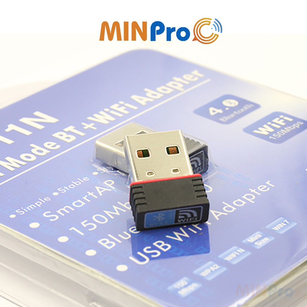 USB WIFI Bluetooth thu wifi cho máy tính bàn, laptop tốc độ cao - MINPROUSB WIFI Bluetooth Chuẩn N tốc Độ 150Mbps có thiết kế thu nhỏ và kiểu dáng đẹp, người dùng có thể kết nối bộ chuyển đổi với bất kỳ cổng USB nào và lưu lại đó. Không cần phải lo lắng sẽ ảnh hưởng đến các cổng USB liền kề hoặc bị rơi ra khi di chuyển máy tính xách tay từ A đến B.