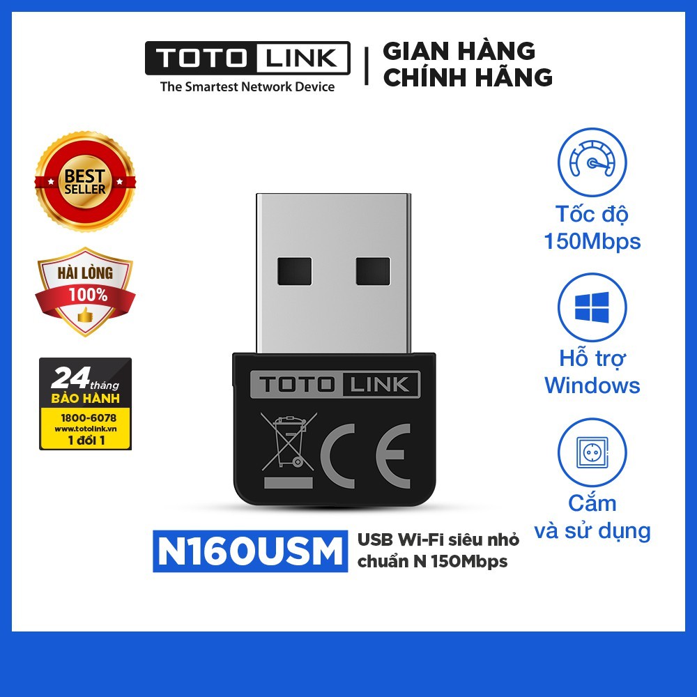Máy tính & Laptop > Thiết Bị Mạng > Bộ Thu Wifi || Usb wifi chuẩn N 150Mbps TOTOLINK N160USMCòn hàng