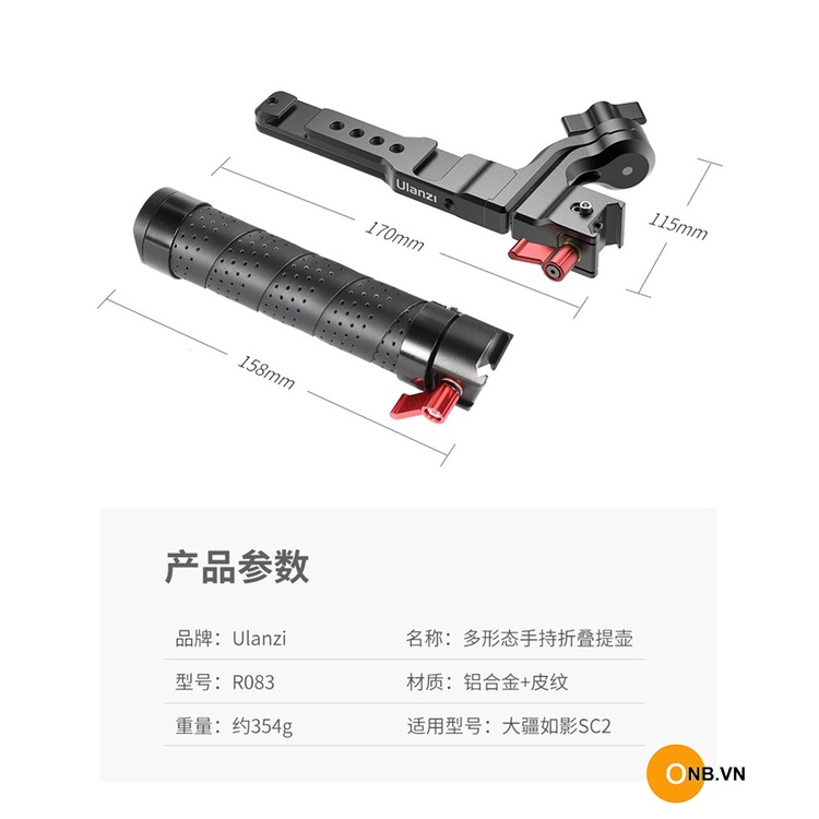Uurig R083 - Tay Cầm Đơn Gắn Hông Gimbal Ronin RS2 - RSC2 - Hỗ trợ quay 2 tay, gắn phụ kiện cực kỳ tiện lợi.Ưu điểm lớn nhất chính cho bạn thay đổi vị trí tay cầm trước hoặc sau , tiện lợi cho nhiều góc quay.