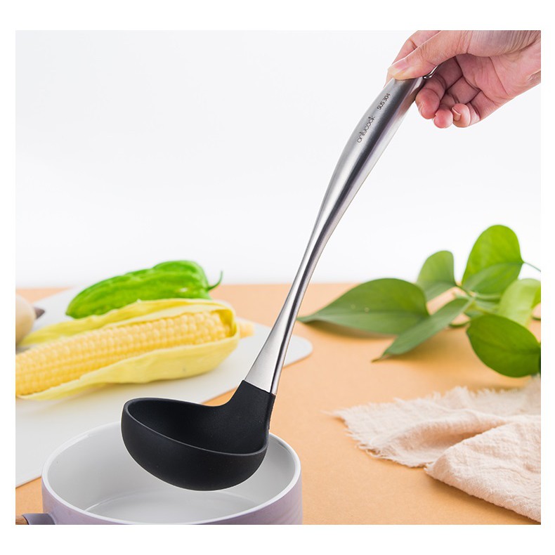 Vá múc canh muôi múc cháo đa năng silicon tay cầm inox 304 có móc treo phong cách Hàn Quốc - Onlycook - 30x8.5cm 143g