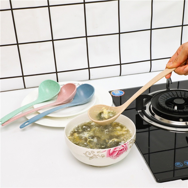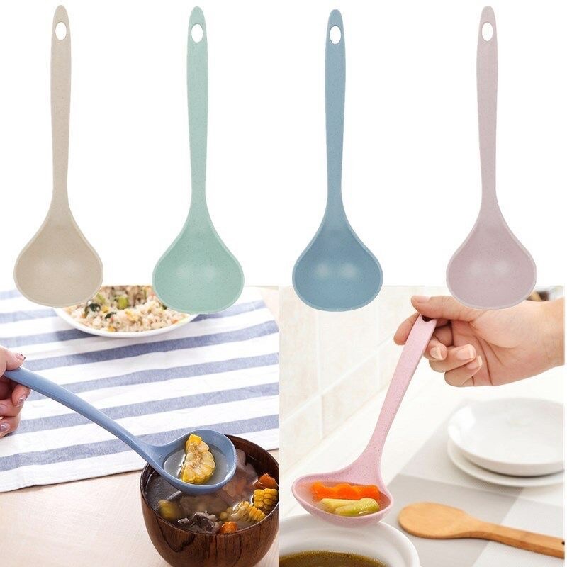 Vá múc canh lúa mạch nhiều màu xinh xắn có lỗ treo tường - Muôi muỗng múc canh lúa mạch cán dài vá ăn lẩu nhiều màu cute