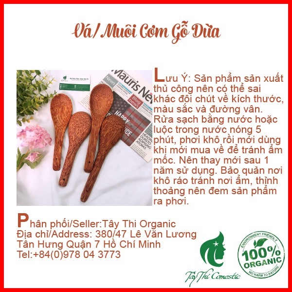 >>>Thông tin sản phẩm:- Tên sản phẩm : Vá/ Muôi Cơm Gỗ Dừa