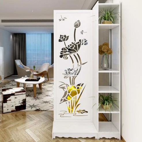 Vách Ngăn Bình Phong Liền Kẹ Hoa Sen Phong Thủy 1 Vách Liền 1 Kệ - Chất Liệu Gỗ PVC Dễ Dàng Vệ Sinh - IG482