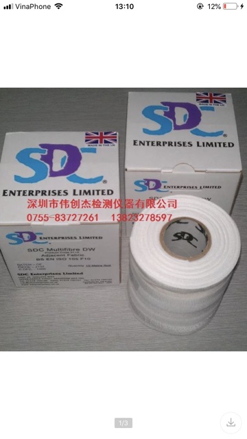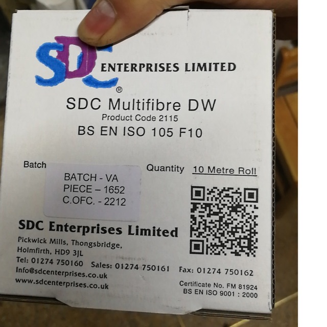 Vải đa sợi SDC Multifibre DW – Loại 10mVải đa sợi – SDC Multifibre DW được phát triển bởi Hiệp hội Dyers & Colourists năm 1986, Vải đa sợi – SDC Multifibre DW là một loại vải thử nghiệm bao gồm sáu thành phần sợi khác nhau.