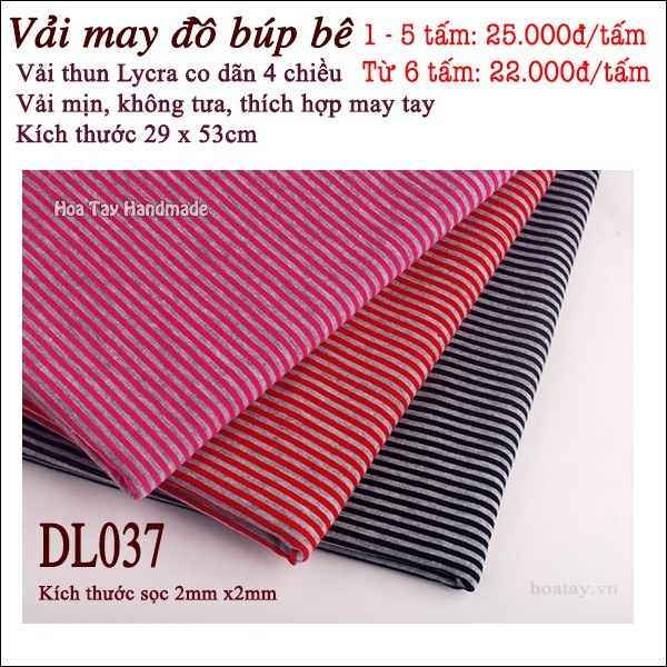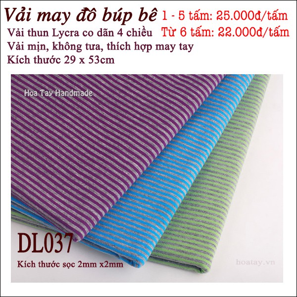 Vải Lycra co dãn 4 chiều may đồ búp bê - Vải nhiều màu sọc xám DL037Vải Lycra phù hợp may tay, dễ sử dụng. Vải mịn, co dãn tốt, ko tưa mép.