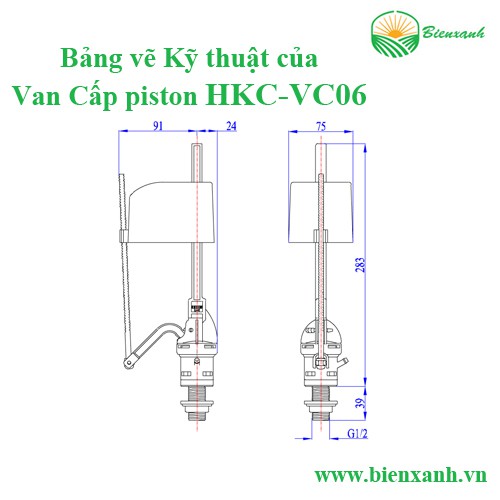 Van Cấp piston của bồn cầu mã sản phẩm HKC-VC06 của Bộ xả bồn cầuThông số kỹ thuật: