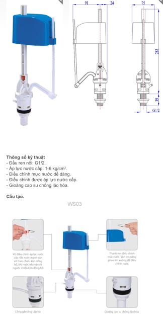 Van cấp nước Hùng AnhThông số kỹ thuật: