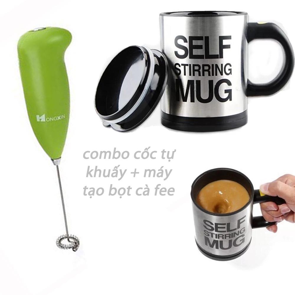 [ Hỗ Trợ Vận Chuyển ] Compo cốc tự khuấy + máy tạ bọt cà phê đánh trứng rất tiện dụng cho các bà nội trợ.