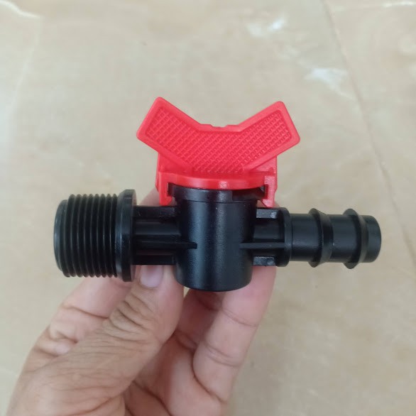 Van khoá ren ngoài 21, ra ống LDPE 20- Khởi thủy ren ngoài 21 có van đóng mở là một phụ kiện không thể thiếu trong hệ thống tưới tự động.