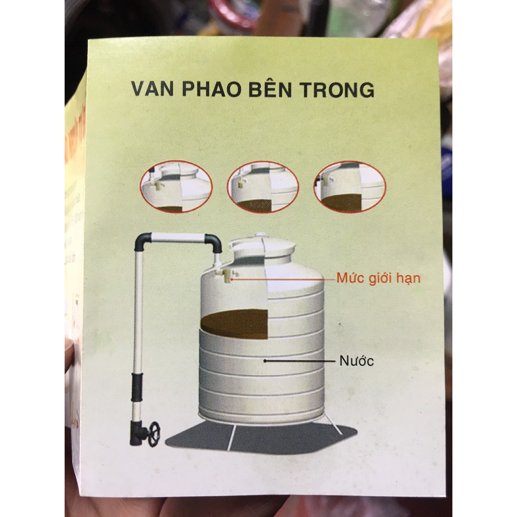 nước được cấp vào thiết bị chứa, mực nước sẽ dâng cao dần khi chạm tới vạch giới hạn của van phao sẽ tự động ngắt nước. Khi nực nước tụt xuống dưới dạch giới hạn sẽ tự động mở và cấp nước trở lại.