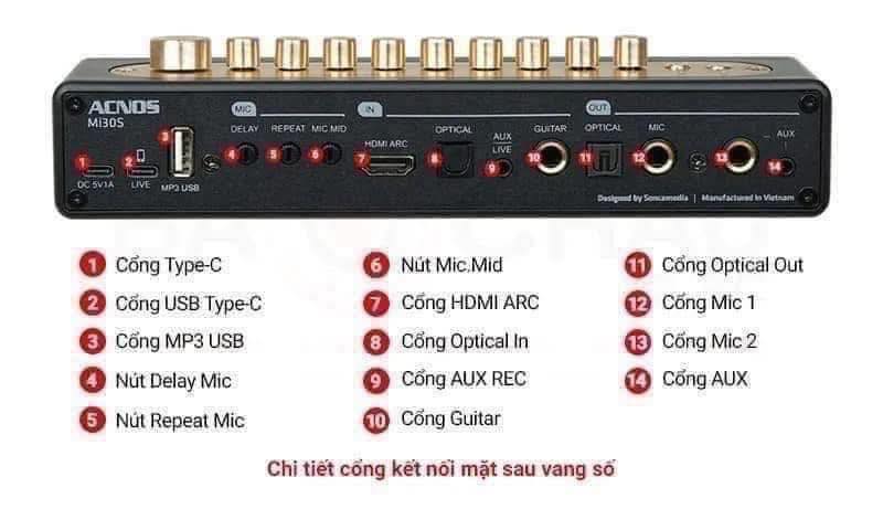 Mặt máy sử dụng bảng điều khiển bằng dãy nút vặn mạ vàng, rất dễ dàng điều chỉnh âm lượng và chuyển đổi các chế độ hỗ trợ khác nhau như Bluetooth, Optical, Guitar,...Mi30S ver2024 - Vang số chỉnh cơ nhỏ nhất kết hợp cùng Micro UHF không dây với vỏ nhôm cao cấp, nâng giọng hát chuyên nghiệp, công nghệ ca hát từ chính Soncamedia. Bộ xử lý số DSP tạo hiệu ứng ECHO & REVERB chất lượng cao, DAC 24bit cho âm thanh chi tiết hơn. Bộ phát sóng FM tần số 87.6-107Mhz cho karaoke trên ô tô. USB type C hỗ trợ live stream trên máy tính và điện thoại Android & iOS hỗ trợ cổng type C. Có 7 băng tần GEQ có thể điều chỉnh bằng App dành riêng cho ngõ live stream. Chống hú di tần chống hú rít cho mic, nâng tiếng cho nhạc thêm réo rắc.
