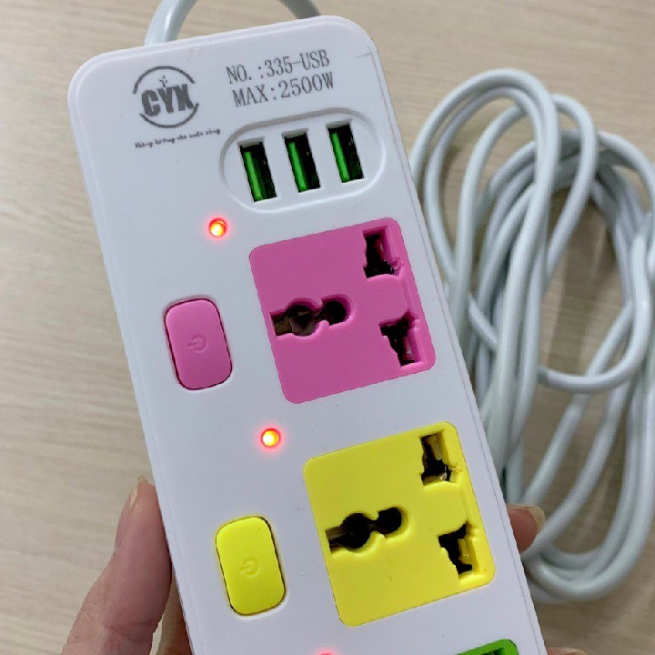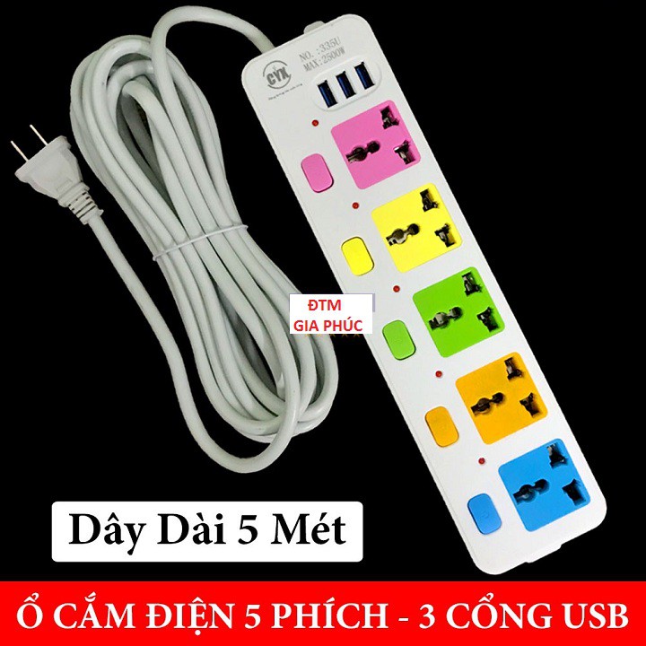 - CÓ 5 Ổ CẮM, 3 CỔNG USB CÓ CÔNG TẮC TỪNG Ổ