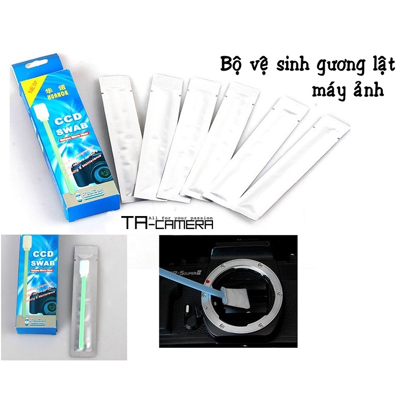 TA Camera: Bộ vệ sinh gương lật và sensor máy ảnhBộ vệ sinh gương lật và sensor máy ảnh giúp loại bỏ các vết bẩn, bụi trên gương lật và sensor một cách hiệu quả và an toàn, đặc biệt là không để lại dấu vết trên bề mặt sensor và không làm trầy xước kính ngắm.