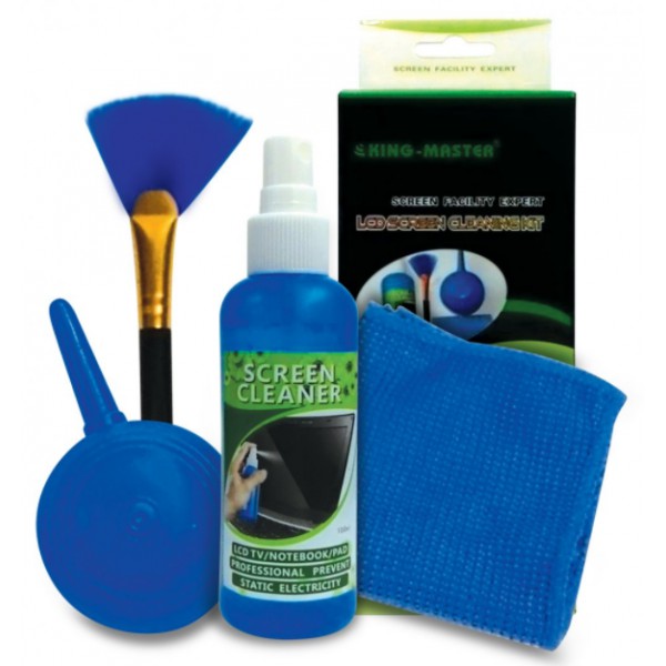 Bộ vệ sinh laptop King Master 4 món bao gồm 1 chổi quét, 1 thổi bụi, 1 chai dung dịch làm sạch và 1 miếng vải lau siêu thấm sẽ giúp nhanh chóng mang lại vẻ ngoài như mới cho chiếc laptop của bạn.
