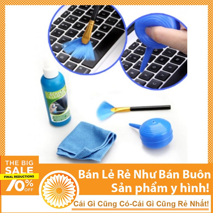 - Bộ vệ sinh laptop bao gồm: Cọ, khăn lau chuyên dụng, dụng cụ thổi bụi, nước rửa màn hình.Với thiết kế nhỏ gọn, tiện dụng và đẹp mắt bạn có thể dễ dàng sử dụng và bảo quản.
