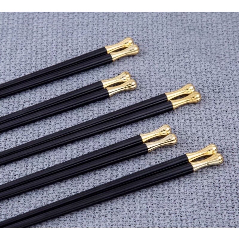 Nhà cửa & Đời sống > Bộ đồ bàn ăn > Bộ dao kéo || Vỉ 5 đôi đũa nhựa sợi thủy tinh chống cháy khảm vàng cao cấp THCòn hàng