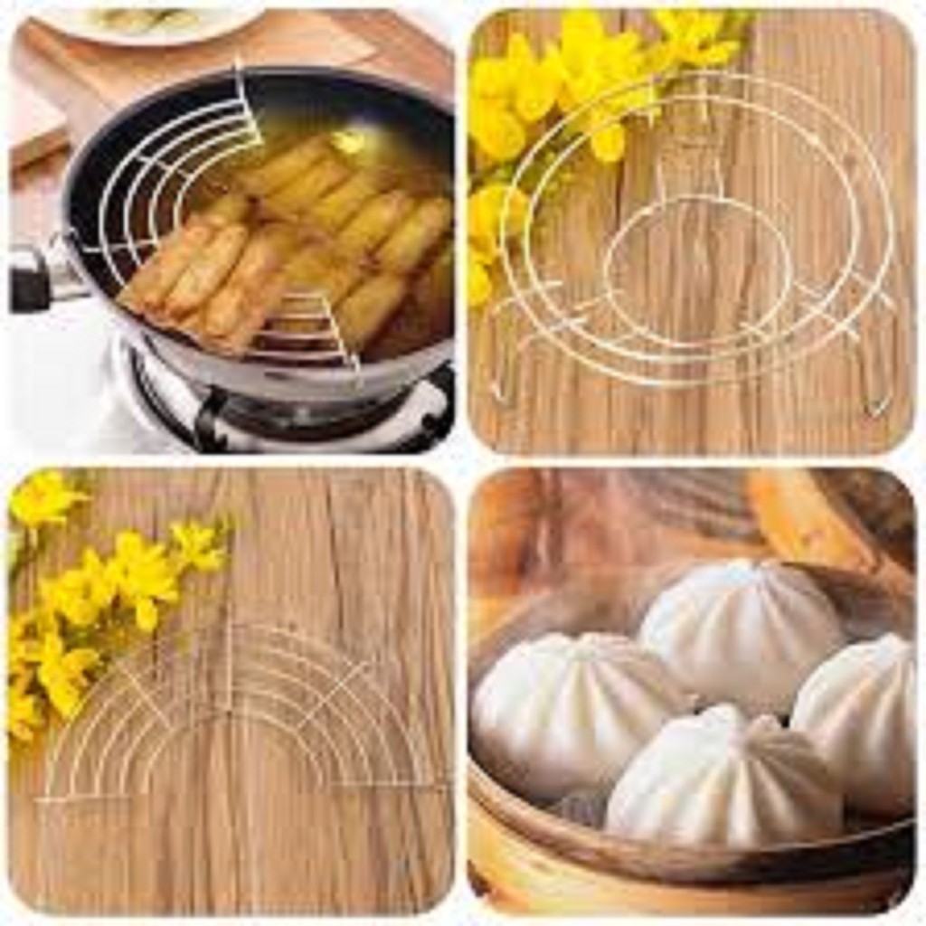 - Vỉ gác chảo rán với thiết kế đơn giản nhưng khá tiện ích, giúp bạn đặt thức ăn đã chiên rán lên trên gác cho món ăn luôn thơm ngon,dóc bớt mỡ thấm trong món ăn mà vẫn giữ được độ nóng giòn vừa phải.