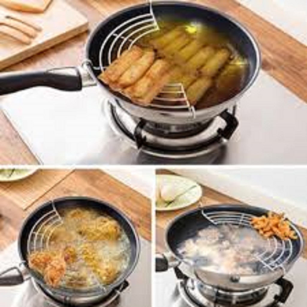 Khi nấu nướng đặc biệt là chiên rán thức ăn, bạn luôn muốn thức ăn được nóng giòn nhưng nếu ăn ngay thì sẽ rất ngấy vì các món chiên rán sẽ thấm rất nhiều dầu mỡ.Bạn đang phân vân không biết làm sao để món ăn không bị ngấy mà vẫn tiết kiệm được dầu mỡ vì vậy KHÁNH CHI sẽ giới thiệu đến bạn sản phẩm vỉ gác chảo rán.