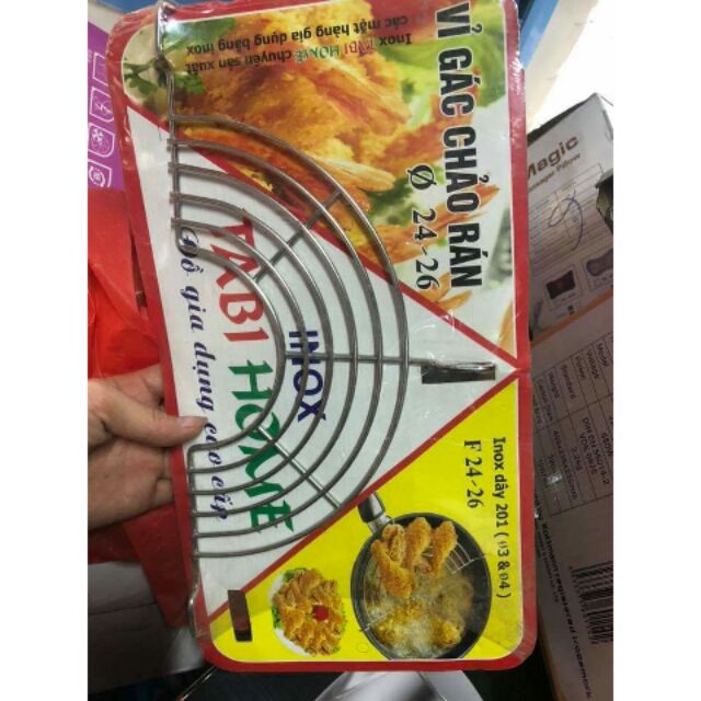 👉 Vỉ gác chảo rán với thiết kế đơn giản nhưng khá tiện ích, giúp bạn đặt thức ăn đã chiên rán lên trên gác cho món ăn luôn thơm ngon,