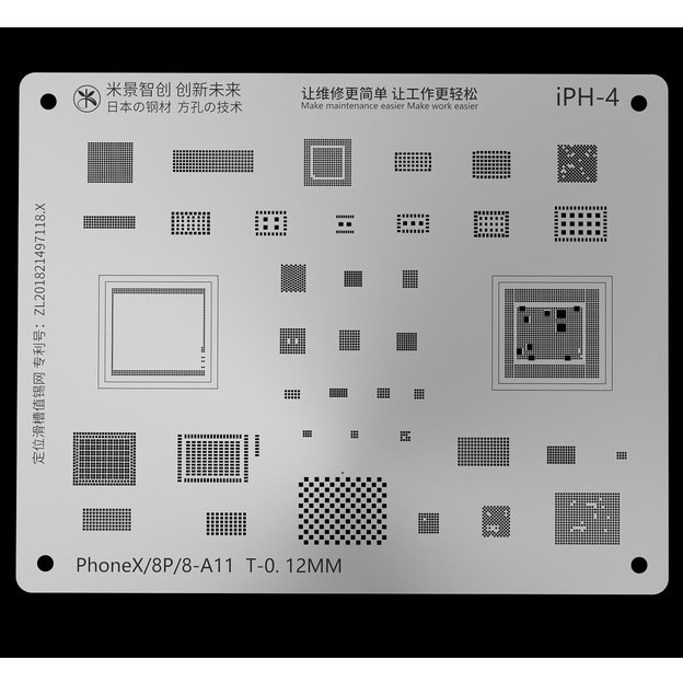 Vỉ làm chân cho iPhone 8/8P-X đủ icVỉ được làm chính xác tuyệt đối lỗ vuông dễ làm, tiêu chuẩn 0.12mm